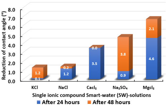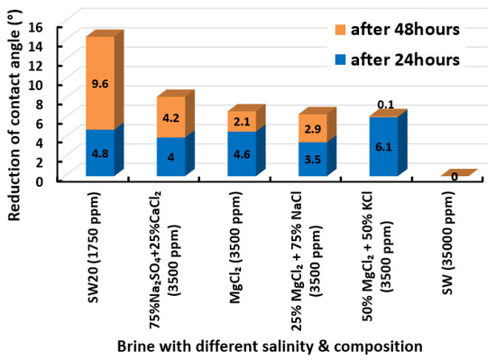 - Manshad, A.K.; Nowrouzi, I.; Mohammadi, A.H. Effects of water soluble ions on wettability alteration and contact angle in smart and carbonated smart water injection process in oil reservoirs. J. Mol. Liq. 2017, 244, 440–452. [Google Scholar] [CrossRef]