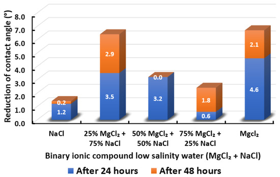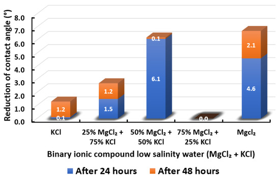 - Shabib-Asl, A.; Ayoub, M.; Elraies, K. Laboratory investigation into wettability alteration by different low salinity water compositions in sandstone rock. In SPE/IATMI Asia Pacific Oil & Gas Conference and Exhibition; OnePetro; The Society of Petroleum Engineers (SPE): Richardson, TX, USA, 2015. [Google Scholar]