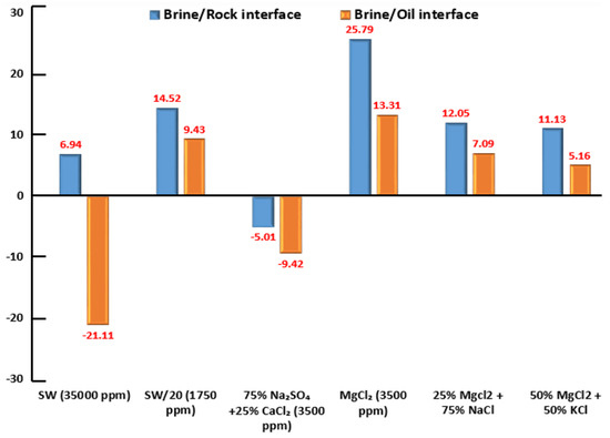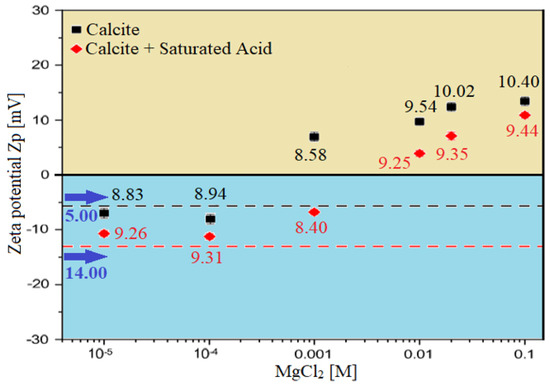 - Jackson, M.D.; Al-Mahrouqi, D.; Vinogradov, J. Zeta potential in oil-water-carbonate systems and its impact on oil recovery during controlled salinity water-flooding. Sci. Rep. 2016, 6, 37363. [Google Scholar] [CrossRef] [Green Version]