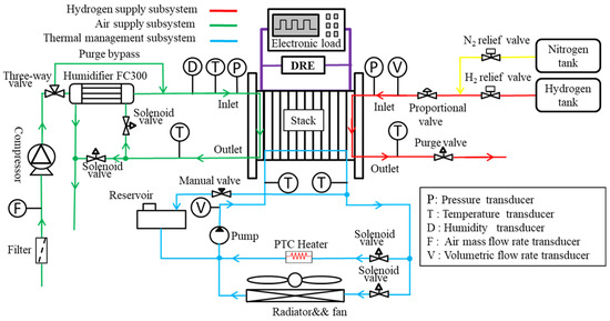 - Corbo, P.; Migliardini, F.; Veneri, O. Experimental analysis of a 20 kWe PEM fuel cell system in dynamic conditions representative of automotive applications. Energy Convers. Manag. 2008, 49, 2688–2697. [Google Scholar] [CrossRef]