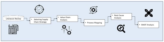 Supply chain analysis (SCA) can be considered the first step of this framework. It consists of the process of investigating and studying the role and contribution of each economic agent (actors such as producers, traders, and consumers, as well as legal entities such as businesses, authorities, and development organizations) along a supply chain, that contribute directly to the generation of a final product or service. This activity involves the evaluation of every stage of the supply chain, starting from the raw materials or intermediate product acquisition and finishing downstream, after all the stages of transformation and increase in value, at the final delivery of the product to the consumer []. The need for such analysis can be easily understood when considering the rise of globalization and global trading. In the global supply chain, the developing countries usually play the role of supplying the raw materials to the more industrialized countries, due to a lack of know-how and expertise regarding the processing steps of a product. These countries mostly face problems affecting the performance of the supply chain which include the instability of governments and policies, corruption, labor-intensive industries, deteriorated infrastructures, the limited use of new technologies, underemployment, child labor, and the low education level of the population []. The fragmented market on which many supply chains of developing countries are based, alongside the low access to quality services and information for all the stakeholders of the supply chain (particularly small producers) and the informal economy somehow regulating many steps of the chain make it difficult to collect precise and accurate information to carry out a rigorous study of the supply chain of a specific product. Therefore, in this research, a customized methodological approach to SCA in developing countries, which has been developed by the authors [] based on the steps shown in Figure 1, is adopted.