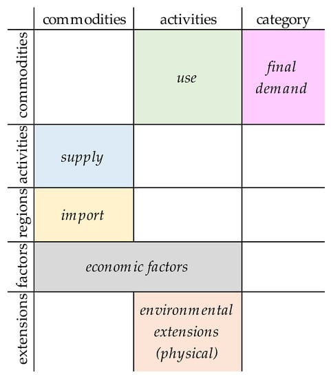 The model adopted in this research is a demand-driven input-output model based on Supply and Use Tables (SUT). As it has been shown by Lenzen, the framework offered by SUT can be adopted to directly perform impact analysis [,]. The authors invite the reader to the A3 section of the Supplementary Material S1 for more technical details.