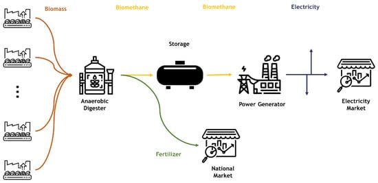 Following the principles of the circular economy, the proposed intervention aims at taking advantage of the waste biomass by feeding an anaerobic digester coupled with a biogas upgrader to produce bio-methane []. It is noteworthy that, in addition to the production of biogas, the anaerobic digestion of agricultural waste also produces an organic residue, namely digestate, which is rich in nutrients. If this digestate is utilized in plant production, nutrients will be reintegrated into the soil nutrient cycle, contributing to maintaining soil quality and fertility. The utilization of digestates may replace or at least reduce the use of mineral fertilizers, since they usually are rich in plant-available nutrients such as ammonium (NH4+), phosphate (P), and potassium (K) [,]. Moreover, the re-use of digestate for plant production, including coffee, is of particular interest to the Kenyan economy, being that fertilizers are massively imported into the country and on which the domestic agricultural sector relies heavily [].