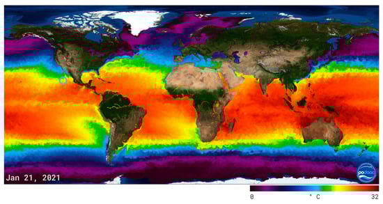 - The Physical Oceanography Distributed Active Archive Center. State of the Ocean. 2019. Available online: https://podaac-tools.jpl.nasa.gov/soto/#b=BlueMarble_ShadedRelief_Bathymetry&l=GHRSST_L4_MUR_Sea_Surface_Temperature(la=true),MODIS_Aqua_CorrectedReflectance_TrueColor&ve=-95.4960923194885,2.0186554336860656,-72.9960923194885,13.004983558686066&pl=false&pb=false&d=2019-04-25&ao=false&as=2019-04-18&ae=2019-04-25&asz=1/day&afr=500&tlr=days (accessed on 5 September 2021).