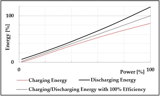 In conclusion, this research considered only changes in efficiency depending on the input/output power changes during charging/discharging, with the exception of nonlinearities depending on external factors, such as temperature and changes.