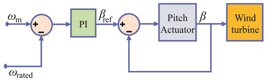 When the wind speed increases or power decreases, the rotor speed rises beyond the rated speed. In such a situation, the pitch angle regulation is activated to keep the rotor speed at its rated speed to maximize the output power, as shown in Figure 7. Then, the optimum pitch angle is used in the rotor-side control method, which can operate between lower and higher rotor speeds. Therefore, the rotor speed and pitch angle control are employed separately to sustain continuous power generation in WECS for balancing the input/output power [32].