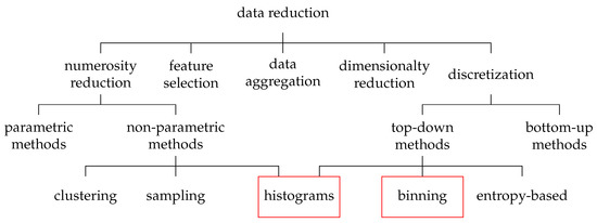 19]: data aggregation, feature selection, numerosity reduction, dimensionality reduction, and discretization. All these methods aim to obtain a reduced representation of the data set without reducing the information value.