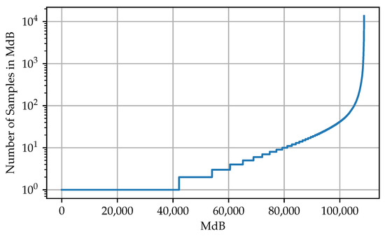 Figure 3). This indicates that the majority of the samples is concentrated on a few MdBs. Theoretically, MdBR can be applied as soon as two or more samples are assigned to the same MdB. The more samples belonging to the same MdB, the more effective the reduction.