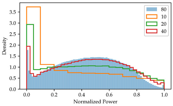 Figure 5 shows the distribution of the normalized output power in some of the reduced training data sets. It can be seen that the distribution varies strongly depending on the number of bins, resulting in the training not providing the same sample distribution as the original data set if a small number of bins is used.