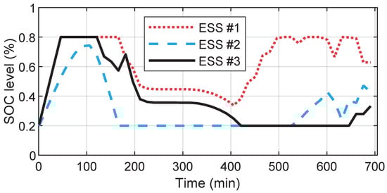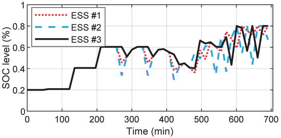 The change of each ESS’s SOC using proposed rolling horizon method.