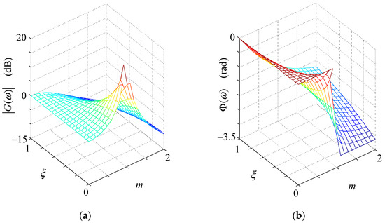 Define . Figure 3 provides the 3D graph of the frequency characteristic. The magnitude characteristic when deserves particular attention. It can be deduced that the magnitude at this point equals dB. When , the magnitude is attenuated at the resonant frequency, whereas magnitude is enlarged to a certain extent when .