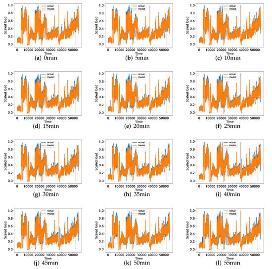 After 100 iterations, the final predicted load data for every 5 min in 1 hour is shown in Figure 7.