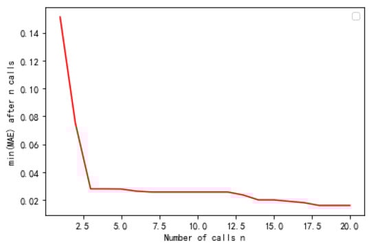 The domain space is searched 20 times, with the least MAE after each search shown in Figure 8. The smallest MAE after the 18th search, according to the graph, is 0.01928 with parameters [0.2, 0.1, 32, 16, 32, 2, 3, 200, 25,000].