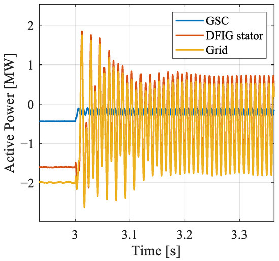 - Electromagnetic torque and grid powers will oscillate with twice the grid frequency and higher amplitudes due to the natural- and negative-sequence components.