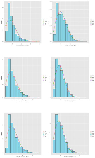 - Rocha, P.A.C.; De Sousa, R.C.; De Andrade, C.F.; da Silva, M.E.V. Comparison of seven numerical methods for determining Weibull parameters for wind energy generation in the northeast region of Brazil. Appl. Energy 2012, 89, 395–400. [Google Scholar] [CrossRef]