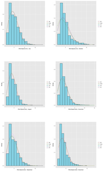 - Chaurasiya, P.K.; Ahmed, S.; Warudkar, V. Study of different parameters estimation methods of Weibull distribution to determine wind power density using ground based Doppler SODAR instrument. Alex. Eng. J. 2018, 57, 2299–2311. [Google Scholar] [CrossRef]