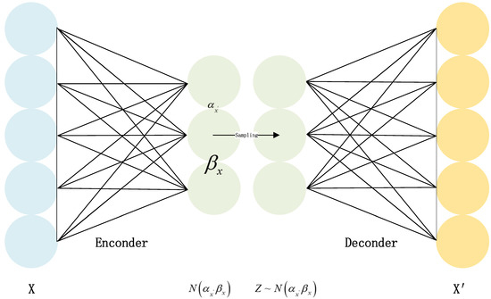 This paper used VAE to determine the interaction among indicators and the degree of interaction. The unsupervised learning intelligent algorithm Autoencoder, which consists of an encoder, a decoder, and a hidden layer, can realize feature reduction and reconstruction. When there was no prior information on index weight, this paper used one of the branches of self-encoder research, Variational Autoencoder. The VAE encodes input variables into the distribution of hidden variables, samples and trains the data according to the distribution and then outputs the distribution of hidden variables. The specific calculation process is shown in Figure 1.