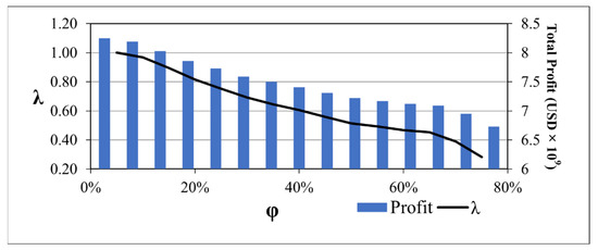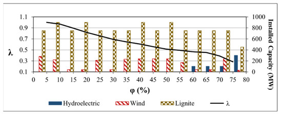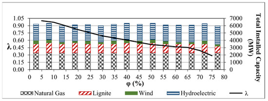 | λ | Profit | Generation Type | Candidate Generation Unit Investments (MW) | ||||||||