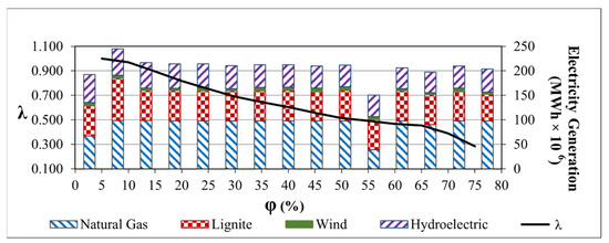 | Generation Unit | λ | Electricity Generation (KWh) | |||||||||||