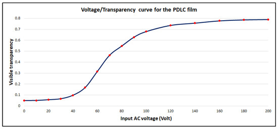 Transparency–voltage curve of the PDLC thin film.