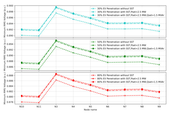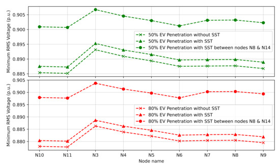 Comparison of minimum RMS voltages with and without SST.