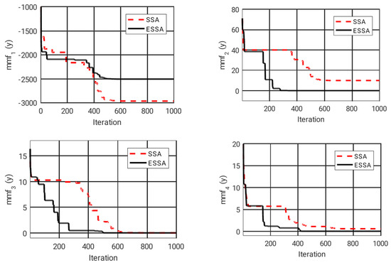 Convergence curves with SSA and ESSA for some mmfs.