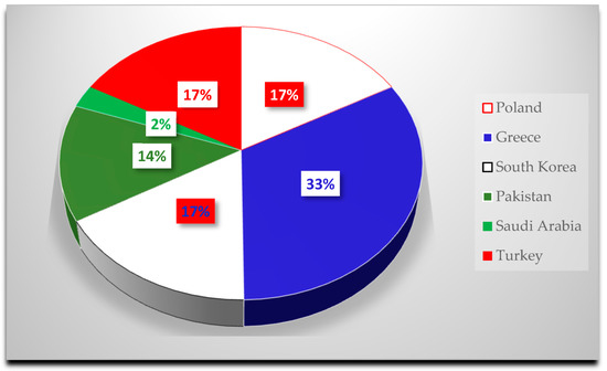 The geographical distribution of the published papers based on the country of institutes is presented in Figure 1. Greek institutes contributed three papers to this Special Issue, and all the other institutes equally contributed one paper.