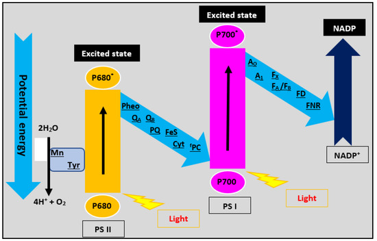 Schematic representation of the charge separation mechanism in natural photosynthesis known as the Z-scheme.