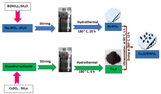 Schematic illustration of production route of hierarchical Cu2S/ Bi2WO6 photocatalysts.