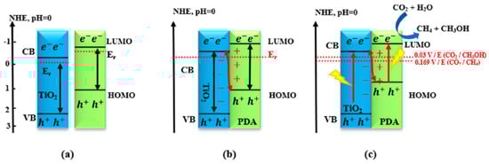 - Meng, A.; Cheng, B.; Tan, H.; Fan, J.; Su, C.; Yu, J. TiO2/polydopamine S-scheme heterojunction photocatalyst with enhanced CO2-reduction selectivity. Appl. Catal. B Environ. 2021, 289, 120039. [Google Scholar] [CrossRef]
