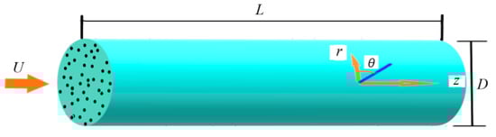 where uz,av and ∆p are the mean velocity and pressure drop of the fluid, respectively, and h is the heat transfer coefficient; L and D are shown in Figure 1.