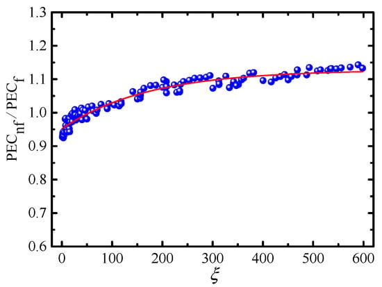 We established a relationship between PECnf/PECf and ξ based on formula (24) and numerical data in Figure 12, Figure 13, Figure 14 and Figure 15 as: