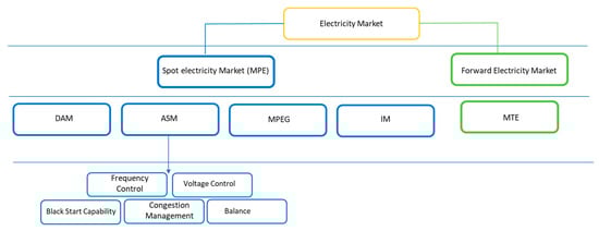 The aim of the electricity market is to ensure a balance between supply and demand at the most effective cost. The Italian Electricity Market is composed by Spot Electricity Market (MPE), where the electrical energy is traded for immediate physical delivery, and by the Forward Electricity Market, where forward electricity contracts with delivery and withdrawal obligation are traded (MTE). MPE structure, in particular, is articulated in several different temporal sequences: Day-Ahead Market (DAM); Ancillary Services market (ASM), Market (MPEG), and Intra-Day Market (IM), as shown in Figure 1.