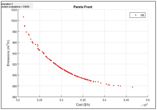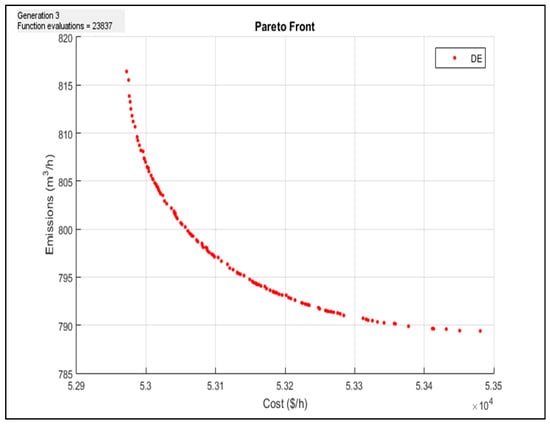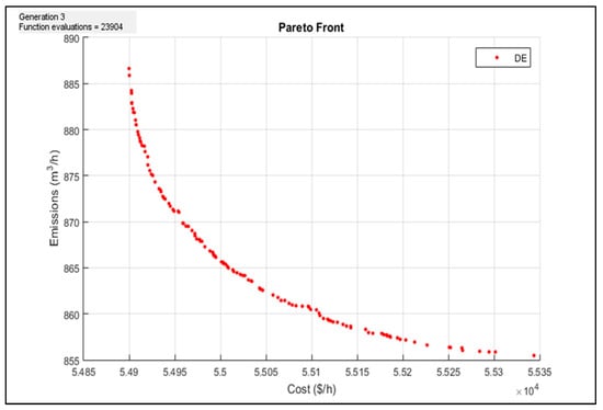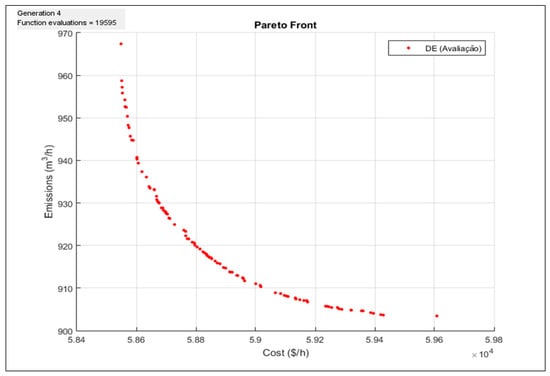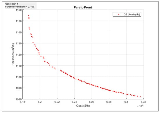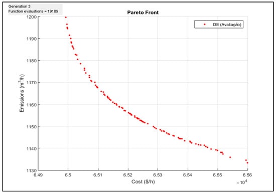 It can be seen in the graphs of the Pareto Front figures (Cost × Emissions), for example, Figure 25, that the curves are inversely proportional, therefore, a multi-objective problem is configured.