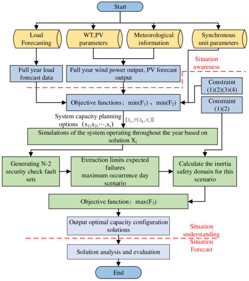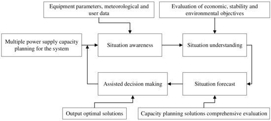 - Situation understanding: This is the stage of data analysis, which aims at understanding and mining the data obtained during the situation awareness stage, taking into account system stability, economy, environmental protection, etc., and analyzing the system operating dynamics of different capacity planning scenarios.