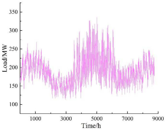 where , , and are the total costs of wind, photovoltaic, and thermal power plants, respectively; is the output of thermal power unit i at time t; , , and are the installed prices of a single wind turbine, a single photovoltaic cell unit, and a single synchronous machine, respectively; , , and are the number of wind turbines, photovoltaic cells, and synchronous machines, respectively; , are the replacement and maintenance costs of wind turbines, respectively; , are the replacement and maintenance costs of photovoltaic cells, respectively; , are the replacement and maintenance costs of thermal power units, respectively. The cost of replacement and maintenance of thermal units. The life cycle of the wind turbine, PV cell, and thermal unit, respectively; the project life and discount rate, respectively. The consumption characteristics of the thermal units are shown in , and respectively.