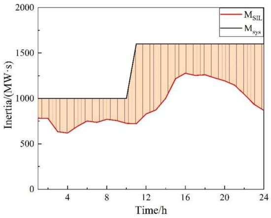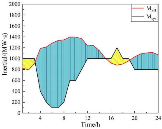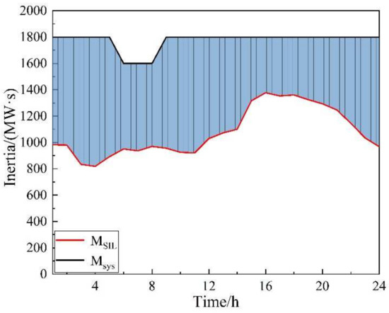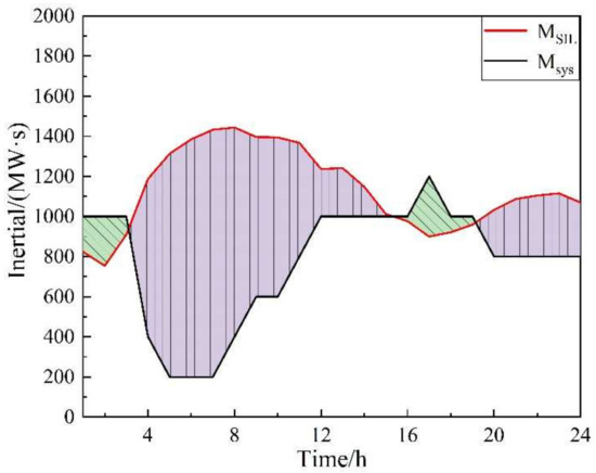 where is the system inertia margin; is the actual system inertia value; is the system safety critical inertia value is the system inertia margin at a certain time. According to the operating characteristics of the power system, the system inertia margin varies at different times and is not continuous. The system Inertia security region is shown in Figure 5.