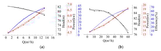 - Huang, R.; Zhang, Z.; Zhang, W.; Mou, J.; Zhou, P.; Wang, Y. Energy performance prediction of the centrifugal pumps by using a hybrid neural network. Energy 2020, 213, 119005. [Google Scholar] [CrossRef]