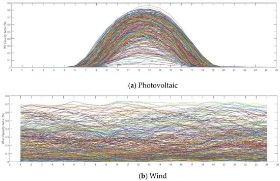 A historical hourly capacity factor of 2019: (a) PV; (b) Wind.