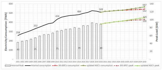 Peak demand and electricity consumption of 9th BPE and NDC.