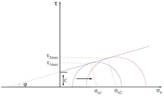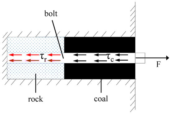 In the process of pulling out, it can be considered that the mechanical behavior of the anchorage interfaces of coal and rock satisfy the Mohr–Coulomb strength criterion [34], as shown in Figure 13. Therefore, the maximum shear stress at the anchorage interfaces of coal and rock under pull-out load can be expressed as: