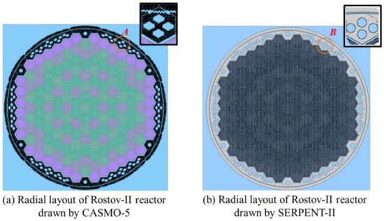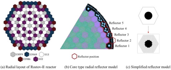 - Usheva, K.I.; Kuten, S.A.; Khruschinsky, A.A.; Babichev, L.F. Generation of XS library for the reflector of VVER reactor core using Monte Carlo code Serpent. IOP Conf. Ser. J. Phys. Conf. Ser. 2017, 781, 012029. [Google Scholar] [CrossRef] [Green Version]