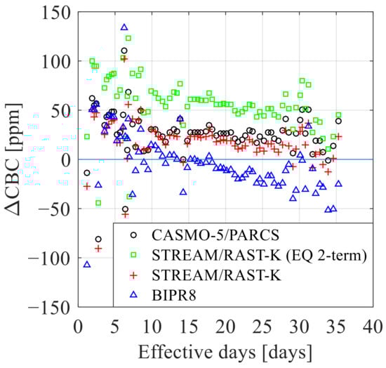 | CASMO-5/PARCS | 1D | 1.01822 | 73 ± 2 | −1.93 | 1.85 | 0.97 |