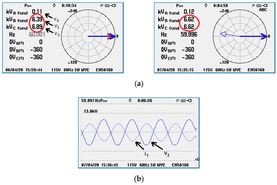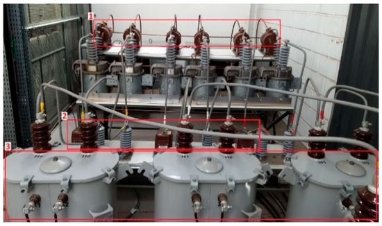 Figure 8 shows a picture from the Medium Voltage Laboratory. The series VSC tests used voltage transformers (VTs, #1), current transformers (CTs, #2), and coupling transformers (#3).