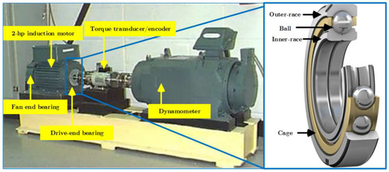 Since the actual bearing-fault signals for offshore wind turbines are usually commercially private, the open dataset from the Bearing Data Center of Case Western Reserve University (CWRU) was used in this work to verify the proposed fault-diagnosis approach, which has similar rotational speeds to those of high-speed bearings for utility-scale wind turbines. The CWRU bearing dataset has been widely used for wind-turbine high-speed bearing-fault-diagnosis studies [28,29].