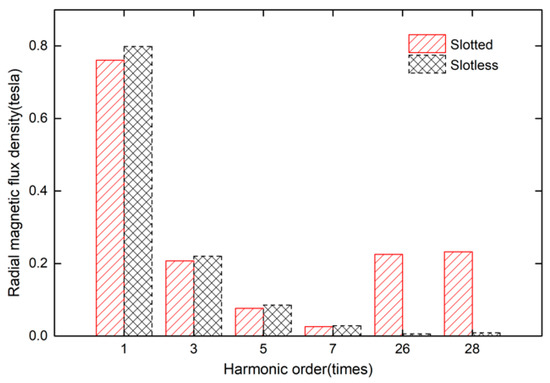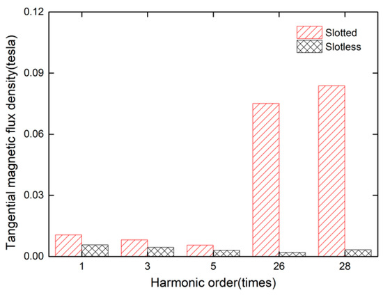 - Valavi, M.; Nysveen, A.; Nilssen, R.; Rolvag, T. Slot Harmonic Effect on Magnetic Forces and Vibration in Low-Speed Permanent-Magnet Machine with Concentrated Windings. IEEE Trans. Ind. Applicat. 2014, 50, 3304–3313. [Google Scholar] [CrossRef]