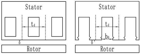 - Dajaku, G.; Gerling, D. Stator Slotting Effect on the Magnetic Field Distribution of Salient Pole Synchronous Permanent-Magnet Machines. IEEE Trans. Magn. 2010, 46, 3676–3683. [Google Scholar] [CrossRef]