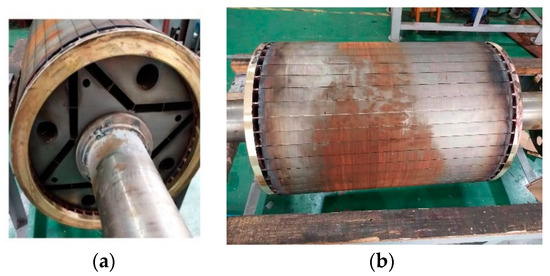 - Li, W.; Cao, Z.; Li, J.; Zhang, X.; Cao, J. Influence of Magnetic Slot Wedge Defect on Starting Performance of High Voltage Line-Start Permanent Magnet Synchronous Motor. In Proceedings of the 2017 IEEE International Magnetics Conference (INTERMAG), Dublin, Ireland, 24–28 April 2017; pp. 1–3. [Google Scholar]