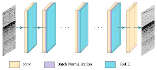 A convolutional neural network was proposed by Yann LeCun of New York University in 1998 [7]. It was not until 2008 that CNN was applied to denoising for the first time. Jain et al. used CNN to obtain high-quality images from low-quality images [8]. In 2009, Viren Jain applied CNN to the process of natural image denoising and achieved good results. In 2012, Geoffrey et al. proposed a convolutional neural network called AlexNet, which made a great breakthrough in image recognition [9,10]. After the success of AlexNet, Visual Geometry Group (VGG) [11] at the University of Oxford, Google Net [12] with Google and other networks created better results consecutively. In 2015, He et al. proposed the Deep Residual Network (ResNet) [13] in ImageNet; the network has won the champion of image classification, detection and location. In the same year, Ronneberger et al. used the U-Net network in the microscope cell segmentation challenge [14]. Zhang et al. proposed a full convolutional denoising network based on residual learning in 2017, which uses a decomposition learning method combined with CNN to separate noise from noisy images [15]. With the increase in layers and trainable parameters of CNN, the trained network can well represent the nonlinear relationship between input and output, and combined with some traditional algorithms, CNN has achieved rapid development in many fields [16]. The ResUNet network used in this paper is based on CNN and a residual network, combined with an “encode-decode” structure to denoise seismic data. This network can solve the problem of gradient disappearance caused by the increase in network layers in CNN effectively, and the denoising effect is better than in the CNN. Compared with the identified works, the ResUNet proposed in this article used a convolutional operation, whose stride was increased, instead of a pooling operation, so as to avoid the loss of effective information, and achieved a very good effect.