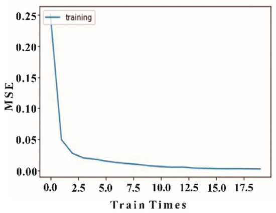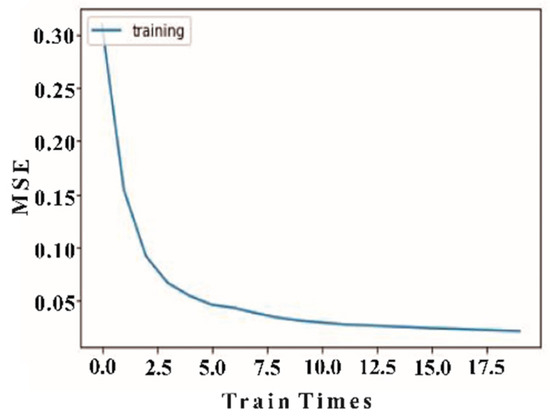 The training epochs are set to 20. The error decline curves of the two networks are shown in Figure 10 and Figure 11. The ordinate represents the mean square error (MSE), and the abscissa represents the training times. The MSE is defined as follows: